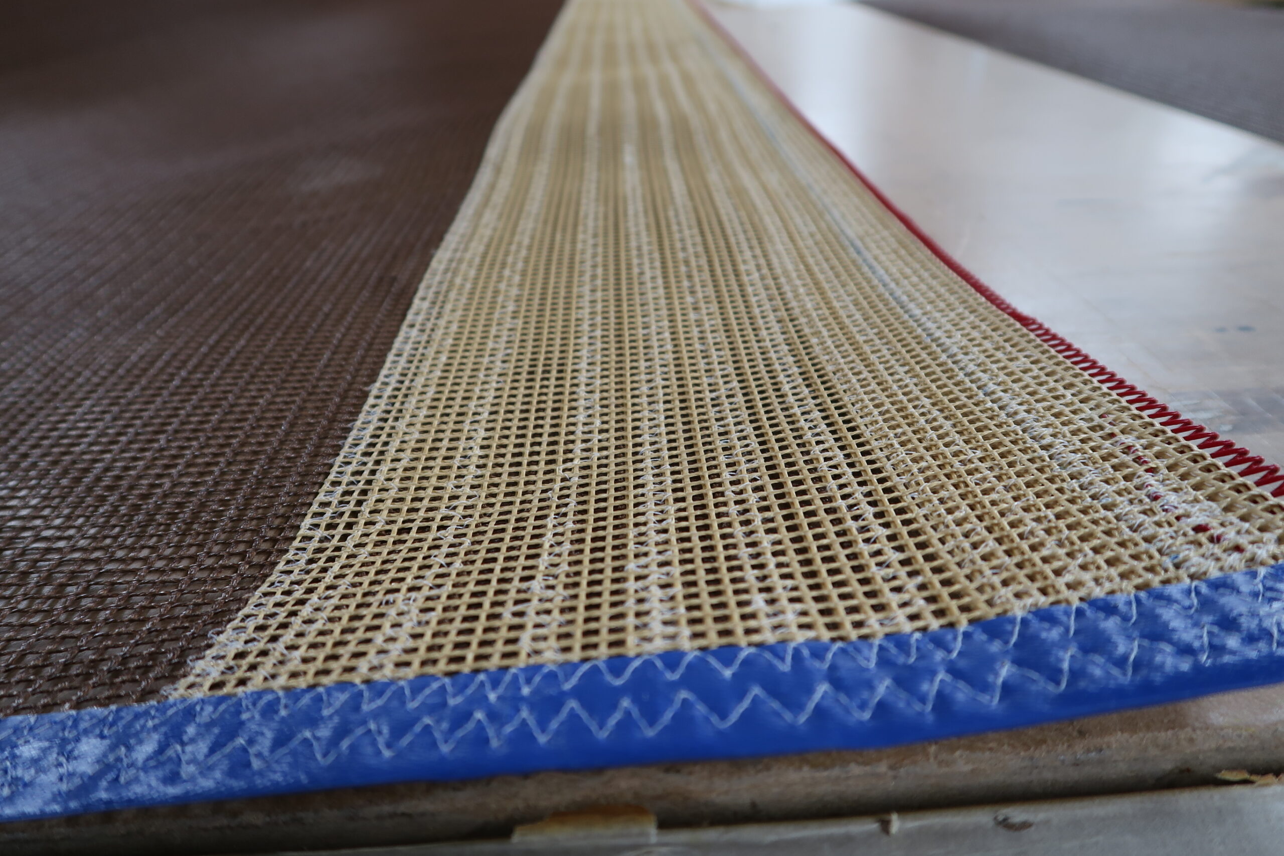 PTFE mesh conveyor belts usually have 25mm wide edge reinforcements or hems that bind and protect the edges and prevent the mesh from fraying.